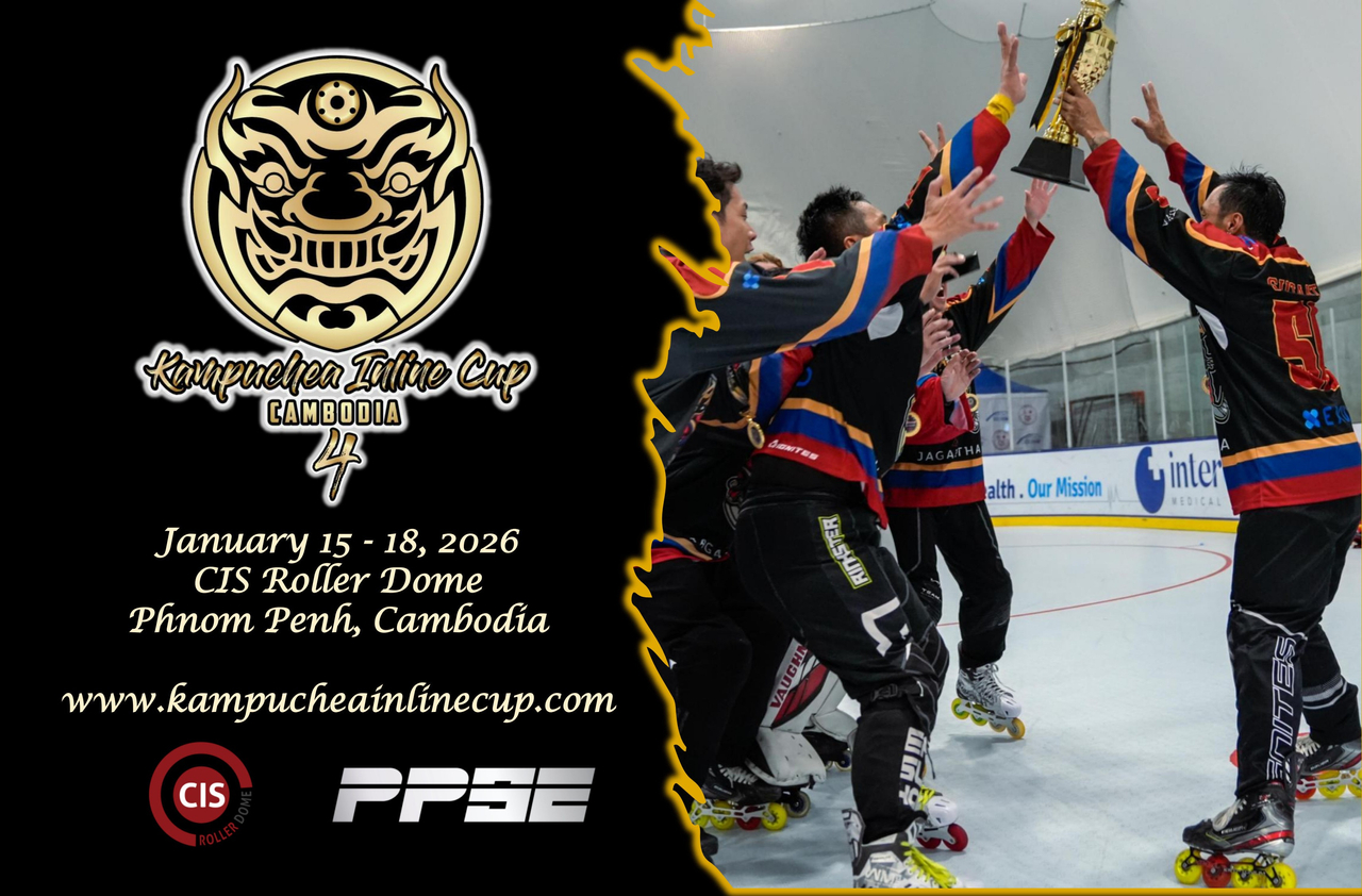 Dates for the Kampuchea Inline Cup 4 - January 15-18, 2026. Interested players should contact Daryl Wong - daryl@hockeylife.hk immediately.